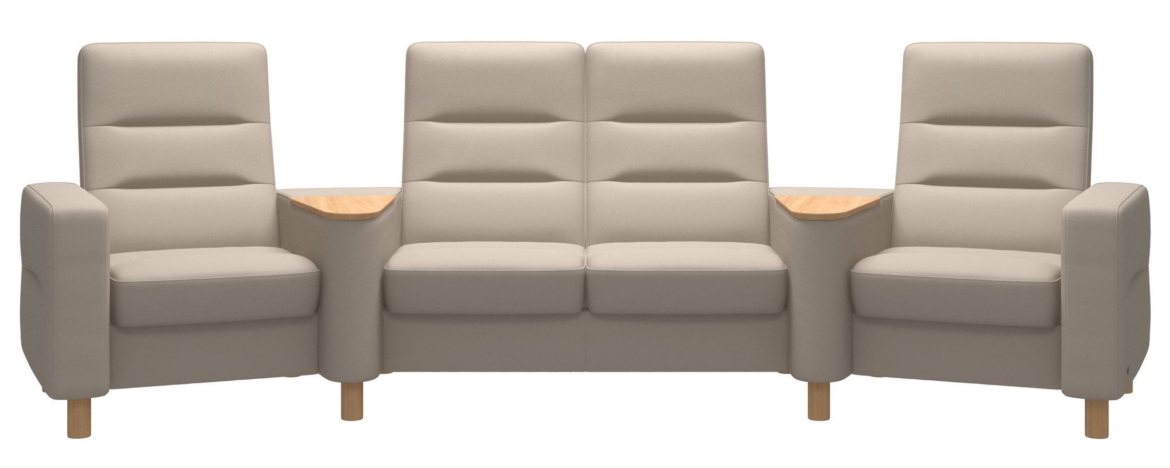 Canapea cu 4 locuri Stressless Wave M Sector setup 121 cu spatar inalt, picioare lemn oak, tapiterie piele Paloma Fog