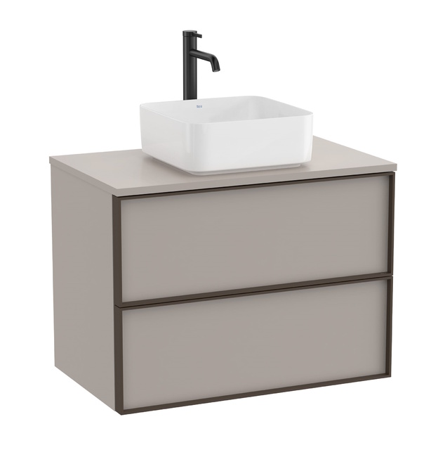 Dulap baza Roca Inspira pentru lavoare pe blat, doua sertare, 80cm, gri nisip