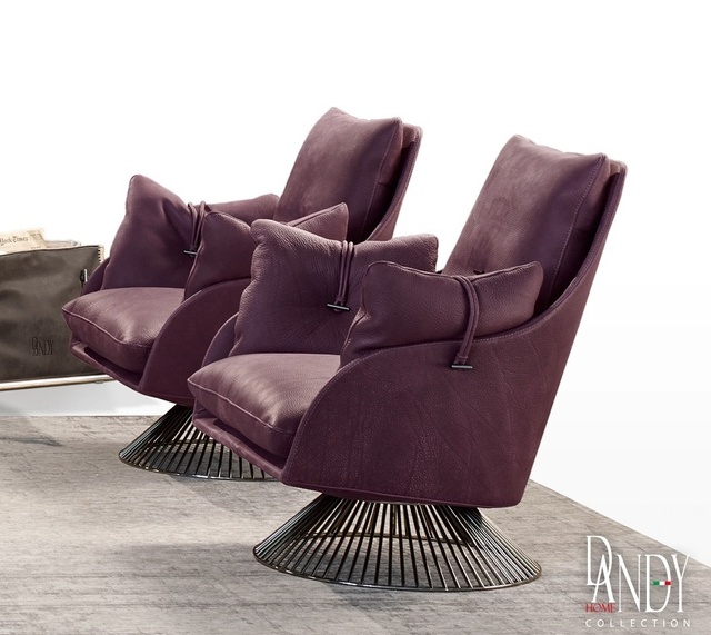 Fotoliu rotativ Gamma Dandy Gloss, piele Deluxe Sauvage J728, HandMade in Italy