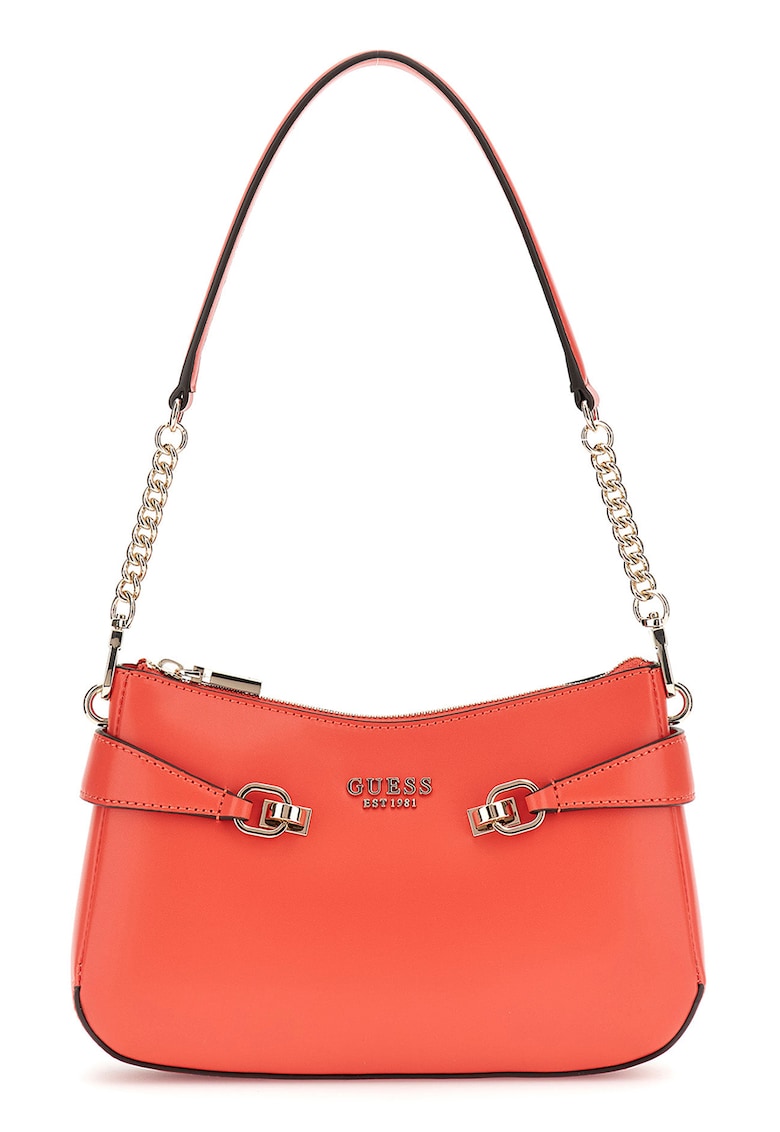 Caracteristici Culoare: coral Material: piele ecologica Model: de umar Stil: casual Imprimeu: uni, logo Barete: cu insertii din lant, una, detasabila Buzunare: unul cu fermoar, pe partea din spate Compartimente: 1 Culoare elemente metalice: auriu Sistem inchidere: fermoar Compozitie Exterior: 100% poliuretan Dimensiuni Dimensiune (cm): 16 x 26 x 4 cm