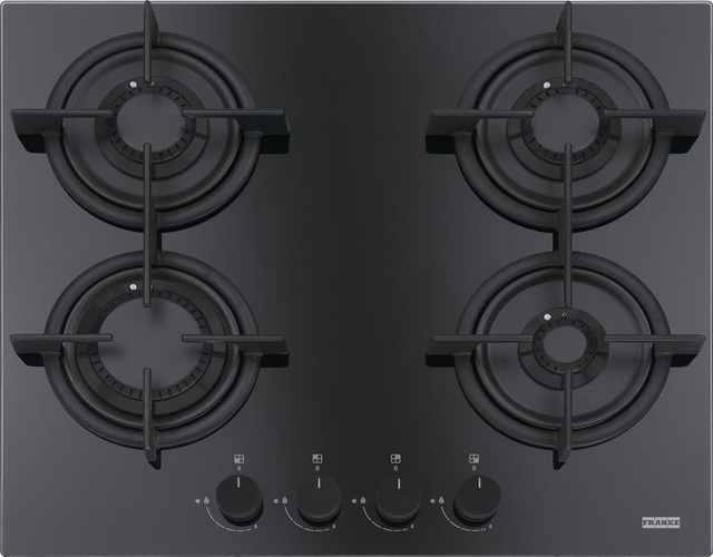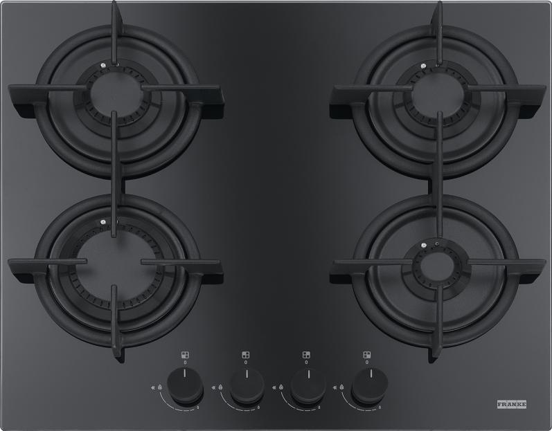 Plita gaz incorporabila Franke Crystal Black FHCR 604 4G HE BK C cu 4 arzatoare, 590x510mm, gratare fonta