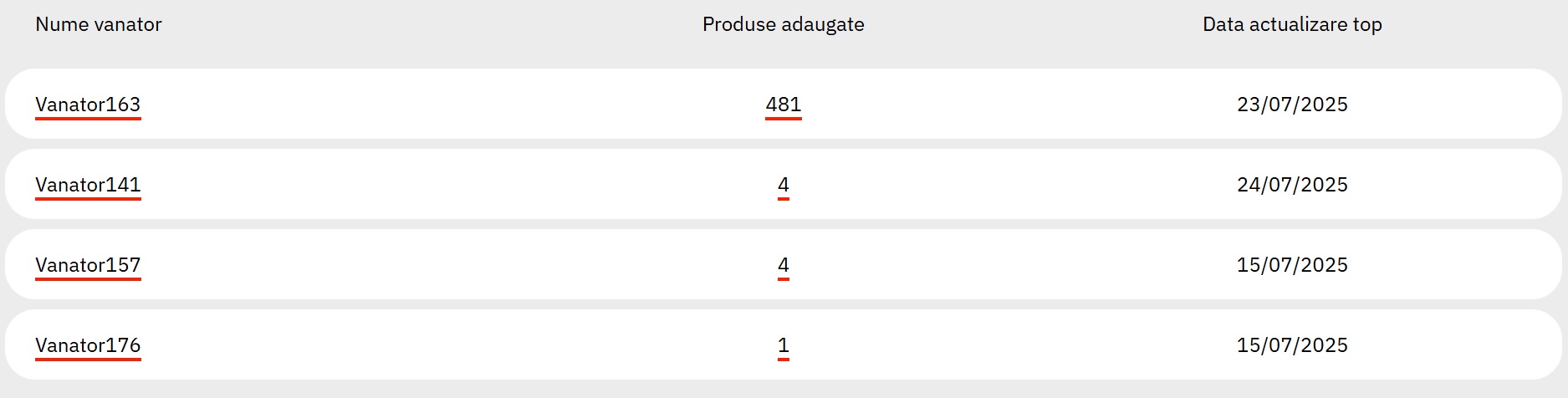 Nota organizatorului: Un utilizator poate câștiga o singură dată premiul săptămânal, însă poate urca produse oricât de des dorește. Numărul de produse se va contoriza pentru extragerile trimestriale și anuale. Daca locul 1 din săptămâna in curs a câștigat in oricare dintre săptămânile precedente atunci premiul se duce la locul 2, cu condiția ca locul 2 sa nu fi câștigat pana acum. Citește mai multe in Regulament